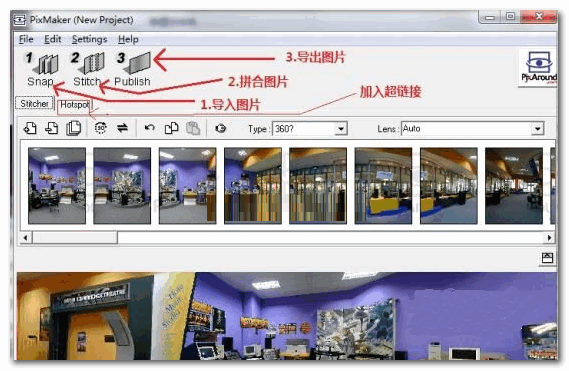 雖然目前已經有相當多的軟件提供制作環場照片(影像式虛擬實境)的功能,但對于一般的使用者來說在使用上仍舊有點困難,而PixMaker 這套軟件特別注意到這點,將介面設計與操作流程上更加的簡化,即便是