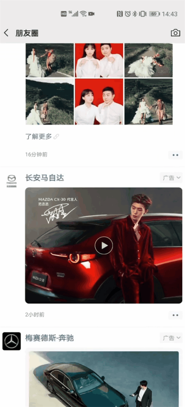 5月31日下午,我和往常一樣打開微信朋友圈,開始刷到幾條廣告還未發(fā)現異常,畢竟偶爾刷到朋友圈廣告早已習以為常。可繼續(xù)往下翻才發(fā)現,我的整個朋友圈都變成了“廣告圈”!如下圖,以往我朋友圈出現過的廣告都一股腦全部涌出來了,中間完全沒有“插播”一條真正的朋友圈。不過,在我繼續(xù)往下滑屏的過程中,朋友圈又變回了正常狀態(tài)。
