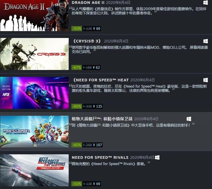 昨天 EA 大量游戲重新上架 Steam,并開(kāi)啟折扣。