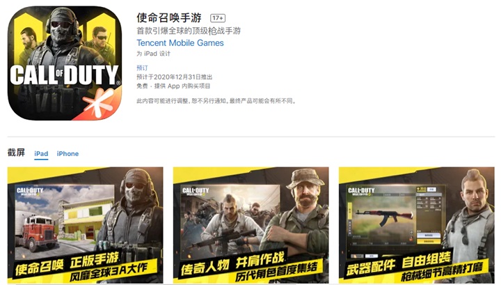 近日,《使命召喚手游》現已登陸國區蘋果 App Store,預計于 2020 年 12 月 31 日推出。