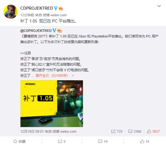 昨日,《賽博朋克 2077》發(fā)布了 1.05 版本的更新補(bǔ)丁,修復(fù)大量 bug 并提高穩(wěn)定性。CDPROJEKTRED 表示,該版本現(xiàn)已在 PC 全平臺(tái)推出。