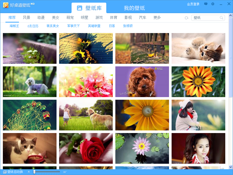 好桌道壁紙是好桌道旗下的一款桌面美化產品,為用戶提供了動漫,美女,汽車等十幾種類別的海量高清壁紙,支持一鍵更換壁紙,個性化收藏。好桌道壁紙,讓你的桌面與眾不同。
