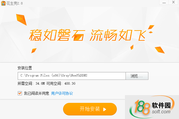 一、在188軟件園下載花生殼軟件安裝包,雙擊運行源文件,點擊立即安裝。
