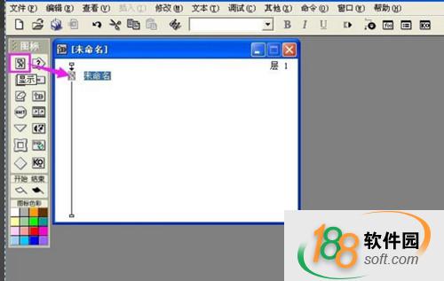 2、選擇左邊工具欄中的顯示圖標,將它拖放到右邊的流程線上