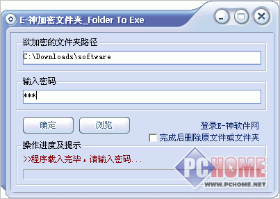 2.可以將文件或文件夾直接加密成Exe可執(zhí)行文件,加密后的文件或文件夾無需依賴[E-神加密文件夾]便可獨(dú)立執(zhí)行;運(yùn)行時(shí)只要輸入正確的密碼再按一下回車便可解密!可將重要的數(shù)據(jù)以這種方法加密后再通過網(wǎng)絡(luò)傳送給你遠(yuǎn)方的同事,朋友或親人;