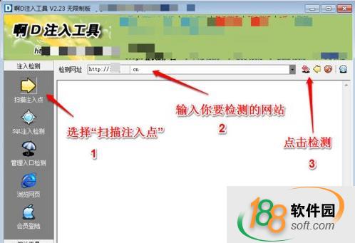 2、打開啊D注入工具,選擇“注入檢測”的“掃描注入點”子項