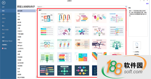 2、億圖圖示可繪制260多種類型的圖表,內含20000多個符號素材和模板。而Visio僅提供了600多個實例,符號庫的素材相對較少,而且設計比較單調;