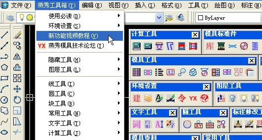 在沒有出現(xiàn)燕秀工具箱的CAD里面手動加載的燕秀工具箱,如果不知手動加載安裝請看燕秀工具箱的幫助里面的如何安裝。