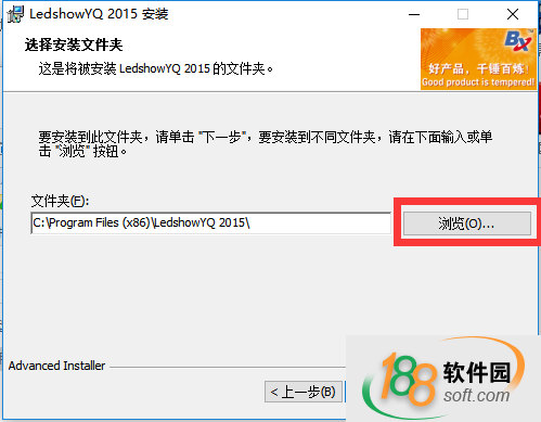 4、選擇LedshowYQ2015安裝位置,如果想換安裝位置,點擊瀏覽。默認安裝點擊下一步