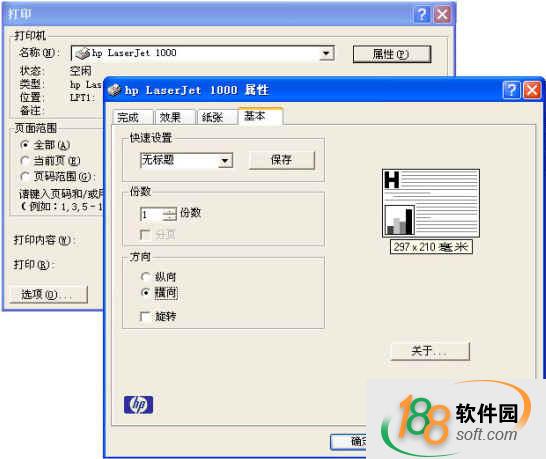 1、在Microsoft office中,選擇文件下拉菜單中的打印,然后選擇打印機名稱:HP laserjet1000,鼠標左鍵單擊屬性,然后在基本中選擇橫向即可.(如下圖)