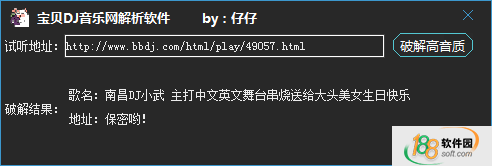 寶貝DJ音樂(lè)網(wǎng)解析軟件是一款用于免費(fèi)下載寶貝DJ音樂(lè)網(wǎng)上的歌曲的軟件,寶貝音樂(lè)DJ網(wǎng)前段時(shí)間被清風(fēng)網(wǎng)給收購(gòu)了,然后里面的很多歌曲下載都要收費(fèi),大家可以通過(guò)這款軟件解析歌曲播放地址的真實(shí)下載地址直接下載到本地。