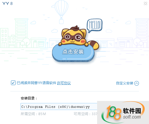 一、在188軟件園下載YY語音安裝包,雙擊運行。