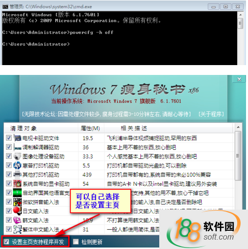 2、清理磁盤空間,可以使用windows7瘦身秘書清理(工具可自己選擇,如windows瘦身秘書、自由天空系統清理&減肥程序、注冊表減肥工具等)