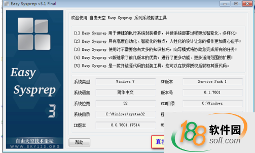 小編推薦:Easy Sysprep 系統封裝工具這款軟件操作簡單,功能強大,輕松簡單,可以下載試試哦,歡迎大家下載,本站還提供{recommendWords}等供您下載。