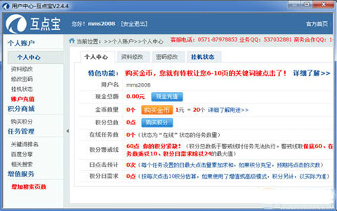4、登錄用戶中心(網址管理模塊),將你的任務加進去并上線,否則,掛機提示“先發任務”,得不到積分哦。