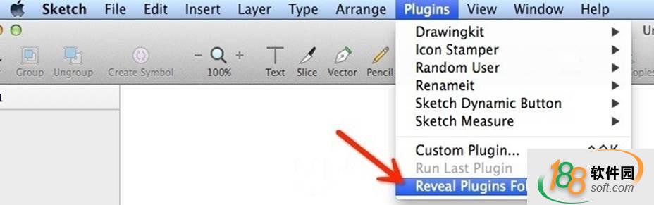 首先看第一種安裝方法,打開sketch(這里以最新版本的sketch3 為例),然后選擇菜單 Plugins>Reveal Plugins Folder,即可打開插件文件夾。 打開后即可知道路徑,不用刻意去記這個路徑在哪里。