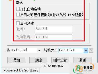 在左邊鍵輸入框中輸入Left Win,右邊的輸入框輸入屏蔽,點擊添加,激活后即可生效。