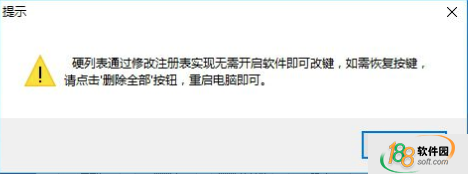 7、提示硬列表的功能,如需恢復按鍵,請點擊刪除全部按鈕,重啟電腦即可。