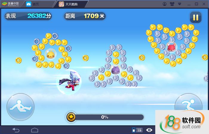 1、繼承經典,新增“下滑”操作。繼承經典酷跑游戲的基礎玩法,新增“下滑”操作,樂趣翻番。區別于市面上常見的酷跑游戲,該作的操作只需兩根手指就可以完全搞定。按“跳躍”鍵向上跳躍,按“下滑”鍵俯身下滑——掌握了這兩個動作你就已經可以完全無顧慮的在游戲中勇往直前了。