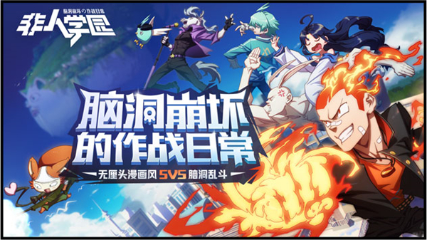 《非人學園》遵循MOBA類游戲。玩法上依舊是傳統的5v5推塔,單局時間也是基本是10-12分鐘的節奏。在傳統5V5推塔玩法之外,《非人學園》中增設了各類神秘道具寶箱、地圖機關機制,那些讓敵人臭到走不動路的臭雞蛋、可以摧毀停車場的龍卷風、瞬間變大好幾倍的超(xing)級(fen)藥劑……