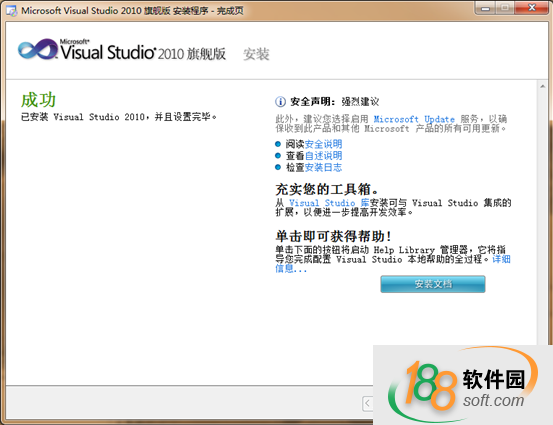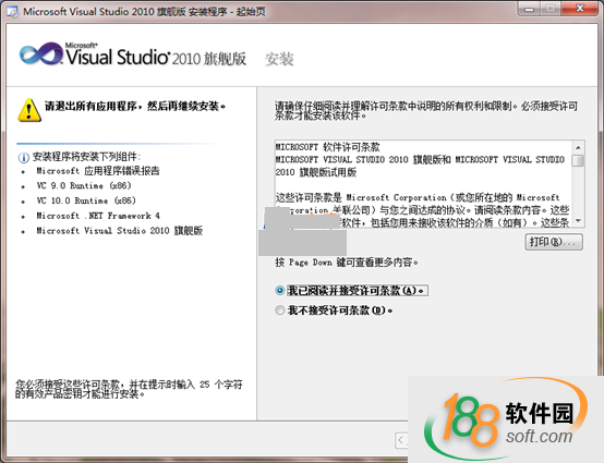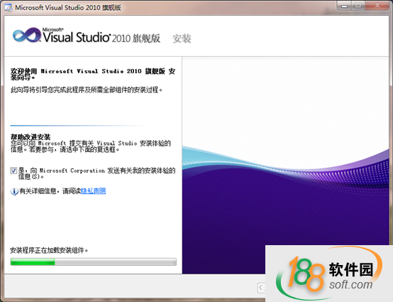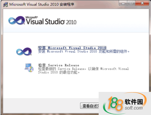 1、從188軟件園下載Visual Studio 2010(vs2010)安裝包,打開安裝程序,點擊安裝