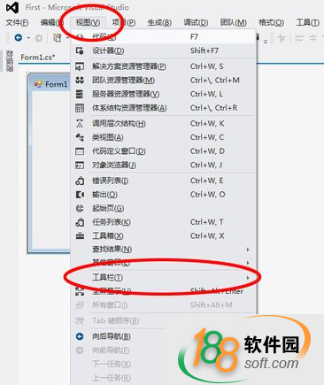 在我們進行窗體設計時,工具箱是一個可以讓我們所見即所得的工具,我們可以直接在里面拖拽控件。首先,打開試視圖-工具箱。然后將其固定在窗口的左端。