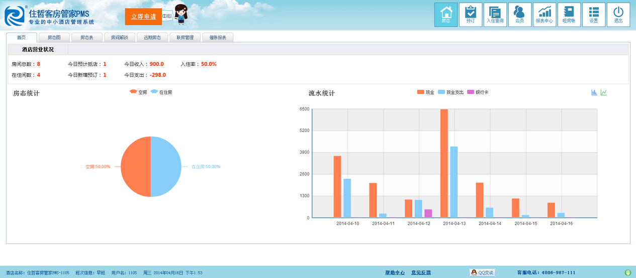 技術上,住哲客房管家顛覆了傳統酒店管理系統操作繁瑣功能單一等劣性,門鎖系統對接功能向跑單漏單說不,數據永久保留的電子報表向月底加班統計說不,就算您在沙灘曬太陽,亦或是在健身房健身,拿起手機也可以隨時查看您酒店的房態。