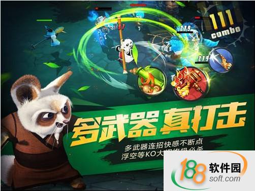 《功夫熊貓》官方手游創新的“易武”系統,把中國武器的魅力發揮到極致。目前游戲中共有11把武器選擇,戰斗中可以使用3把武器靈活切換,同時武器決定技能,每把武器有3個技能,玩家可以根據不同的戰斗情況選擇不同的武器,通過搭配最高可解禁出990種技能連招表現。繁多的武器種類、變幻莫測的招式技能,包括背擊、閃避、破甲、浮空等多種動作設定,給玩家營造了無限策略空間。