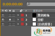 第三步,在“效果”合成中添加三個固態層(兩白一黑),并命名為圖中所示,并且使分形固態層獨奏(獨奏就是獨立顯示,獨奏開關在圖層鎖旁邊的那個白點)