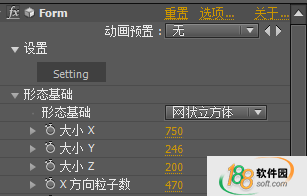 Trapcode form是一款基于網格的三維粒子插件,61種預置效果可以隨心所欲修改,內置的音頻分析功能可以將音樂的節奏轉化為色彩,透明度等參數的關鍵幀,與AE完美結合。