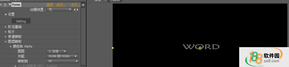 第十步,在圖層映射(Layer MaPS)中調整,顏色和Alpha圖層映射到字體(這個就是粒子匯聚的圖層),功能選擇RGBA到RGBA,投影到XY上(這就是我叫大家把Z軸的層數改為1的原因)