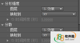 第十一步,繼續調整圖層映射下面的映射設置,在分形強度(fractal strength)和分散(disperse)中將圖層設為“效果”,映射到XY上。