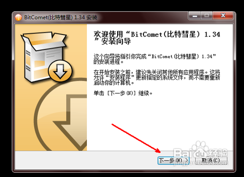 2、閱讀比特彗星安裝向導,點擊下一步;