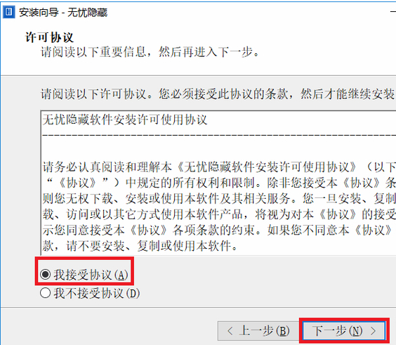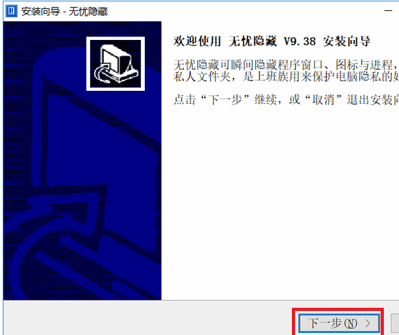 1、無憂隱藏 下載后,打開安裝包,點下一步