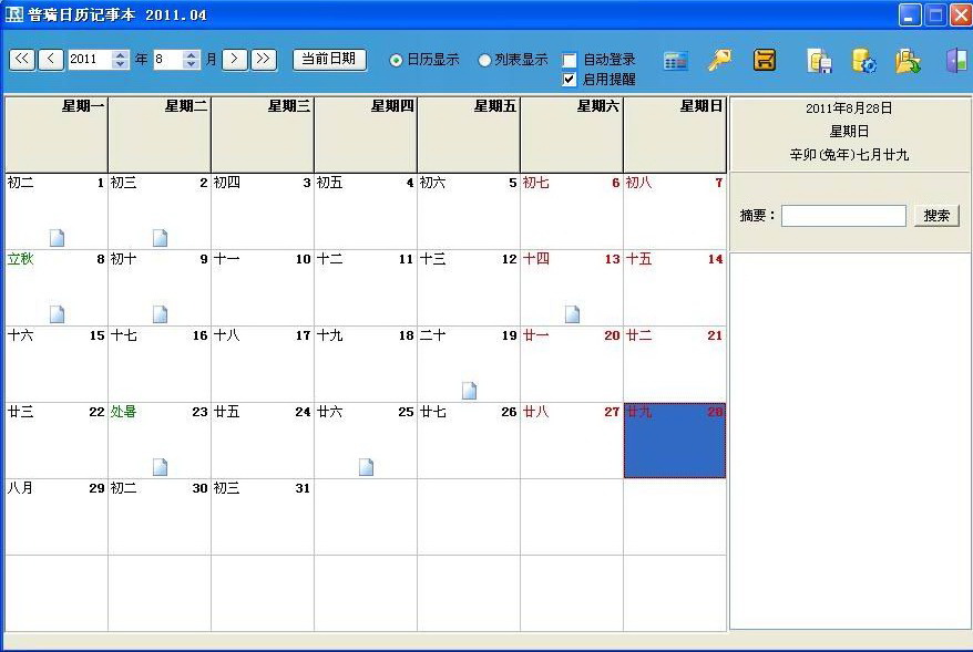 如果您要制訂工作計算,直接在日期上雙擊就可以了,當然了使用前最好是先閱讀一下幫助文件,這樣使用本日歷記事本軟件更能得心應手。