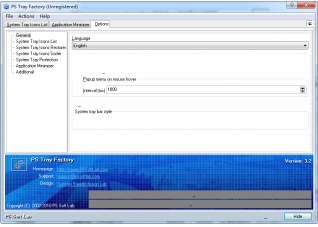 PS Tray Factory是工具欄工具,擁有類似 Windows XP 中“隱藏工具欄中非使用中的圖標”的功能,也能夠?qū)⒌褪褂寐实墓ぞ邫谙到y(tǒng)圖標收集在它的選單之中。