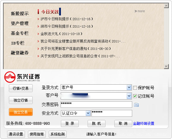東方證券投資贏家交易系統是原新干線委托系統的全新改版,功能強大、操作簡單,為用戶提供在線股票買賣、基金買賣、查詢資產、委托查詢、銀證轉賬、單客戶多銀行轉賬等功能。推薦與東方證券同花順行情交易系統互備使
