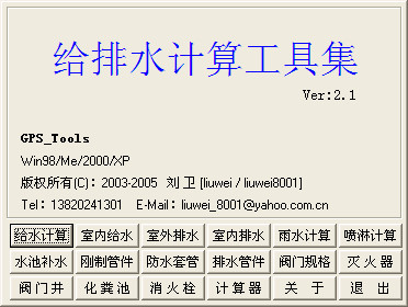 給排水計算工具是一款給排水工程量計算軟件,將數值填入指定區域即可進行自動計算,即點即用,可計算給水,排水,熱水,雨水,消防,人防工程水系統,供各位參考使用。