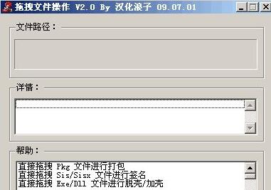 “Drag塞班軟件打包程序”是一款小巧的塞班s60平臺sis文件的打包程序,全拖拽操作,啟動主程序“拖拽文件操作”后,除了可以完成對SIS文件的打包,還