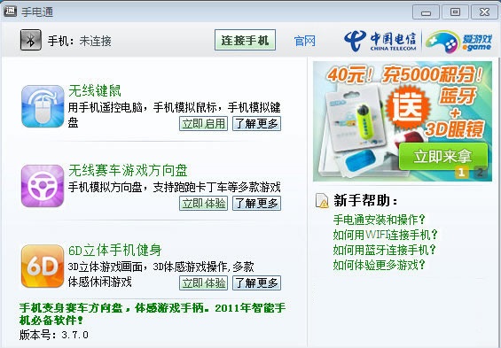 手電通電腦端是一款可以把用戶的手機變成為無線賽車方向盤的軟件。該軟件有著最新的藍牙和WIFI連接技術,將手機與您的電腦相連接,支持跑跑卡丁車,極品飛車,QQ飛車,各種火爆賽車游戲,讓你不需額外購置昂貴