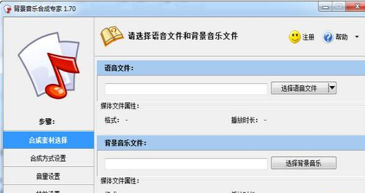 背景音樂合成專家一款為語音音頻資料添加背景音樂的專用工具。可與“能說會道 XP”等各種文字轉語音軟件配合使用,為您制作的語音廣告、語音小說等增加背景音樂,使得制作效果更加專業。