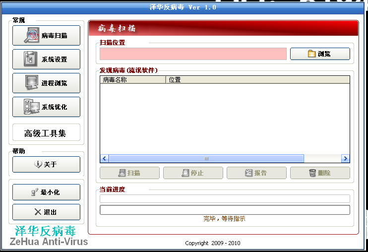 澤華反病毒(ZeHuaAnti-Virus)是一款綠色免費的殺軟輔助工具可單一掃描硬盤或是一個文件夾可全面查殺病毒、蠕蟲、木馬等惡意代碼,全面保護PC用戶的系統和信息安全。具有系統優化進程管理文件
